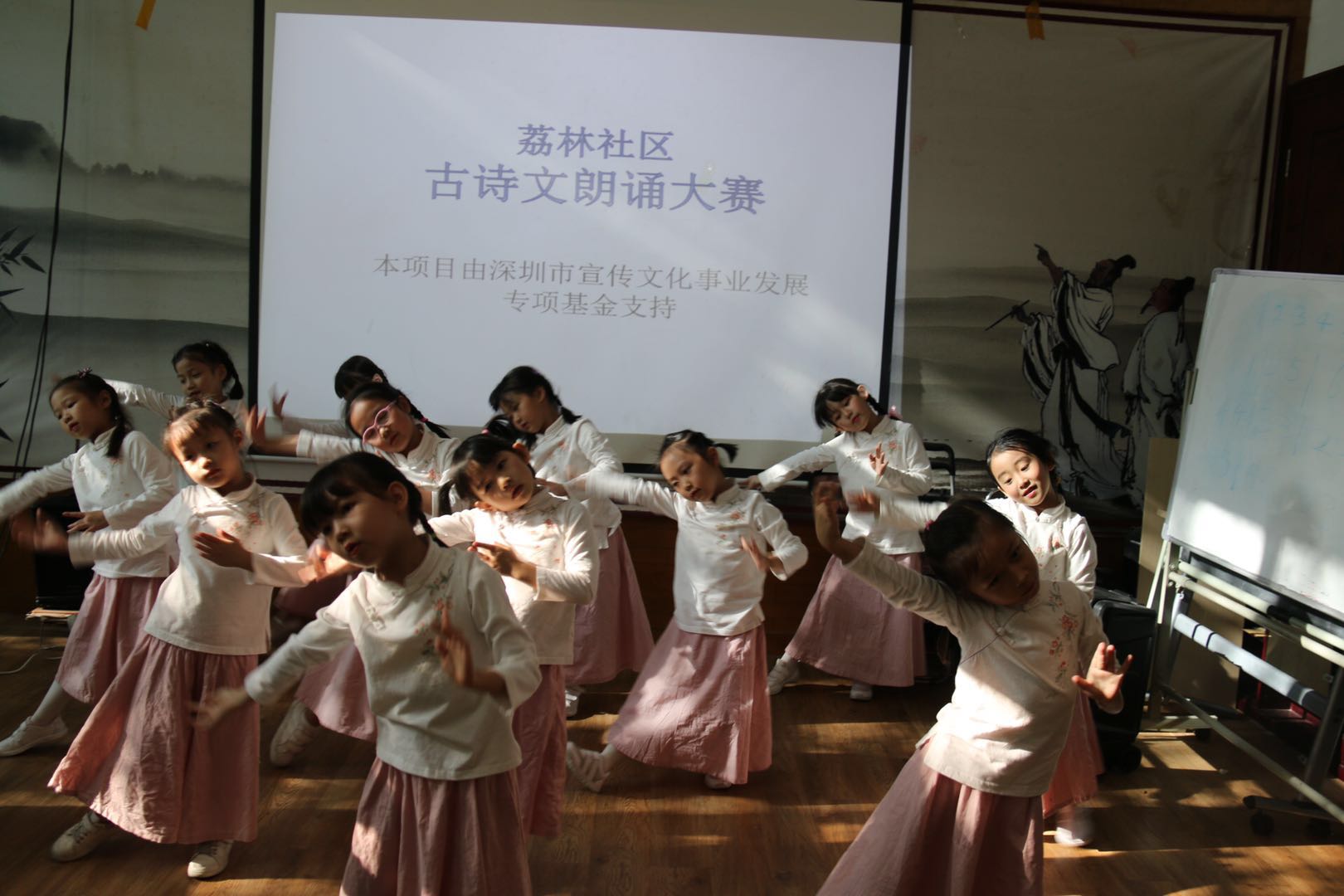 比賽結(jié)束后,荔林社區(qū)歡樂頌朗誦隊(duì)為大家?guī)砹怂麄冏孕袆?chuàng)作的《唐詩里的中國》,引發(fā)現(xiàn)場觀眾的熱烈掌聲。而城市山林幼兒園小朋友在老師的帶領(lǐng)下為大家?guī)砹宋璧副硌荨栋偕菩橄取?,小朋友們可愛的舞姿引起了觀眾的陣陣喝彩。最后,評委們?yōu)楂@獎(jiǎng)的選手頒發(fā)了獎(jiǎng)杯,本次比賽也在社區(qū)居民的依依不舍中圓滿結(jié)束。