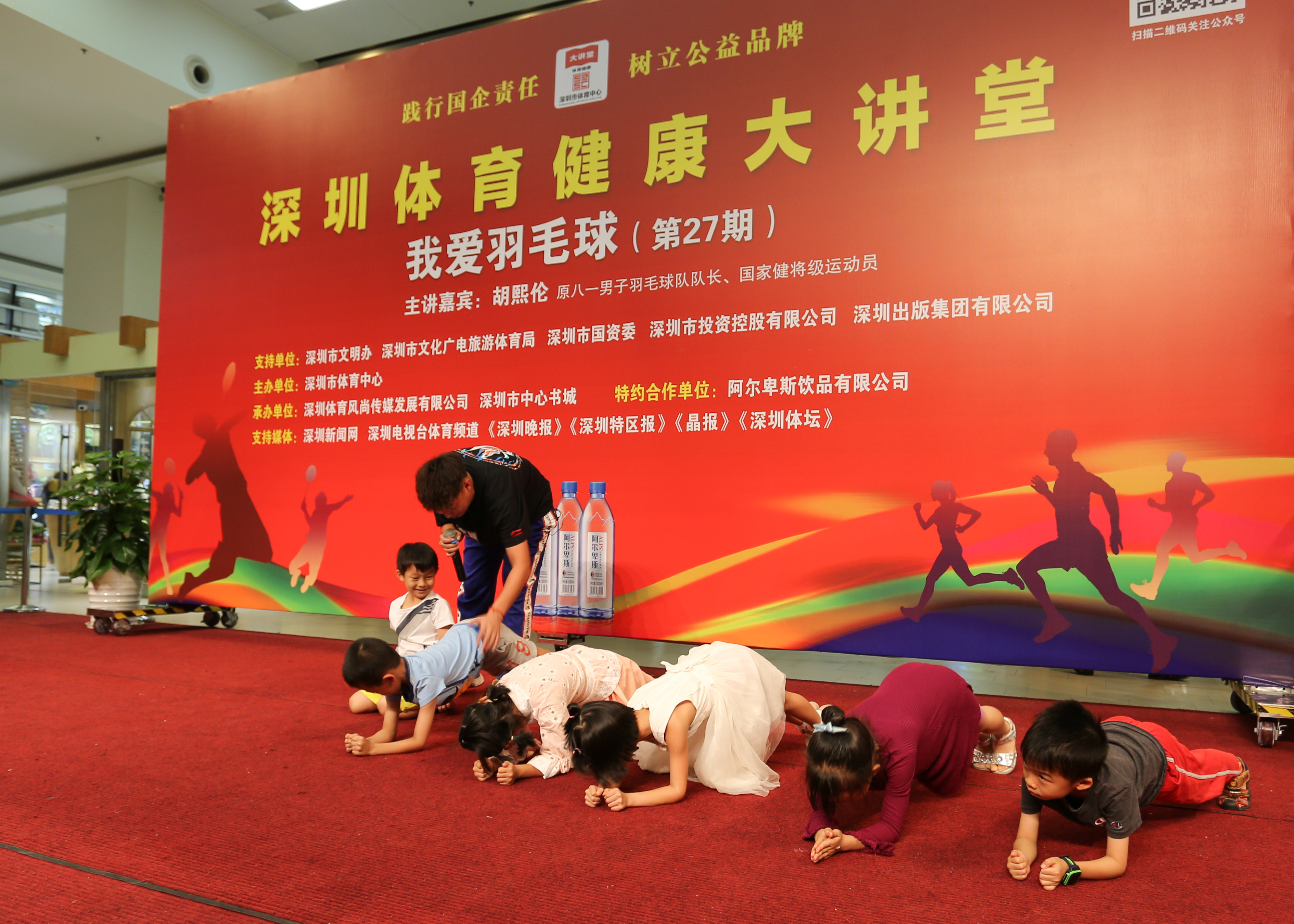 胡教練現(xiàn)場(chǎng)指導(dǎo)小朋友平板撐鍛煉