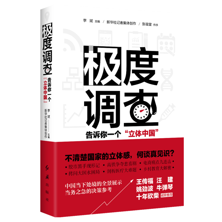 “他山之石,可以攻玉?!秉h員干部除了直接調(diào)研,還要善于間接調(diào)查,研讀科研機(jī)構(gòu)和媒體的調(diào)研報(bào)告,通過專業(yè)人士的視角,了解國情。 《極度調(diào)查:告訴你一個(gè)“立體中國”》,就是一本記錄時(shí)代變遷的調(diào)研力作。新華社北京分社副社長、總編輯李斌者歷時(shí)三年,深入中國各地實(shí)施一系列重大調(diào)研,直擊民生痛點(diǎn)與焦點(diǎn),全方位呈現(xiàn)了復(fù)雜多樣的中國社會(huì)現(xiàn)實(shí)。20余萬字的《極度調(diào)查》,來自繁華都市,來自風(fēng)云行業(yè),更來自深山峽谷、偏遠(yuǎn)山村,股市、高鐵、電商、生態(tài)、教育、貧困、健康等諸多方面均有涉及,傳達(dá)出了最一線、富有思想沖擊力的聲音。讀此書,全方位、多維度了解中國國情。