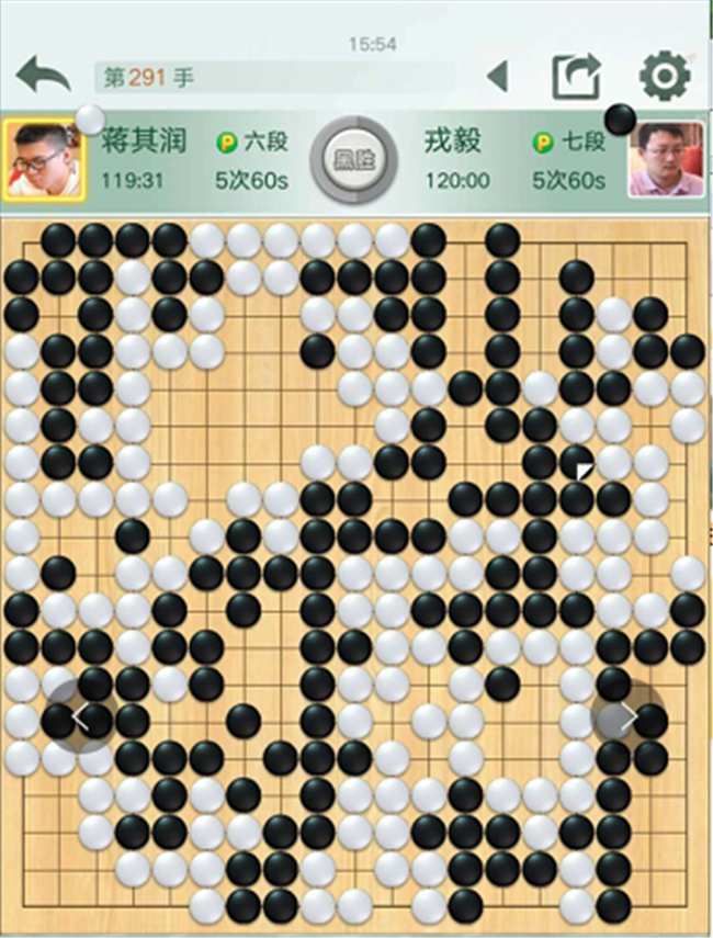【賽場(chǎng)花絮】本輪比賽中,下出了“四劫循環(huán)”無(wú)勝負(fù)的棋局。此局出現(xiàn)在上海建橋?qū)W院隊(duì)對(duì)陣日照山海大象隊(duì)的主將之戰(zhàn)中,上海主將李維清與日照主將江維杰下出“四劫循環(huán)”,按規(guī)定,本局判為無(wú)勝負(fù)。對(duì)局停止時(shí),雙方都各剩最后一次讀秒。兩人立即進(jìn)行加賽。中國(guó)圍棋隊(duì)領(lǐng)隊(duì)華學(xué)明發(fā)朋友圈稱(chēng)贊棋手具有職業(yè)風(fēng)范。