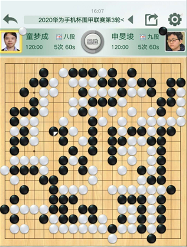 二臺(tái),主將申旻俊執(zhí)白對(duì)陣童夢(mèng)成。局勢(shì)一直接近。白126、132連續(xù)走了小棋,黑開(kāi)始領(lǐng)先。