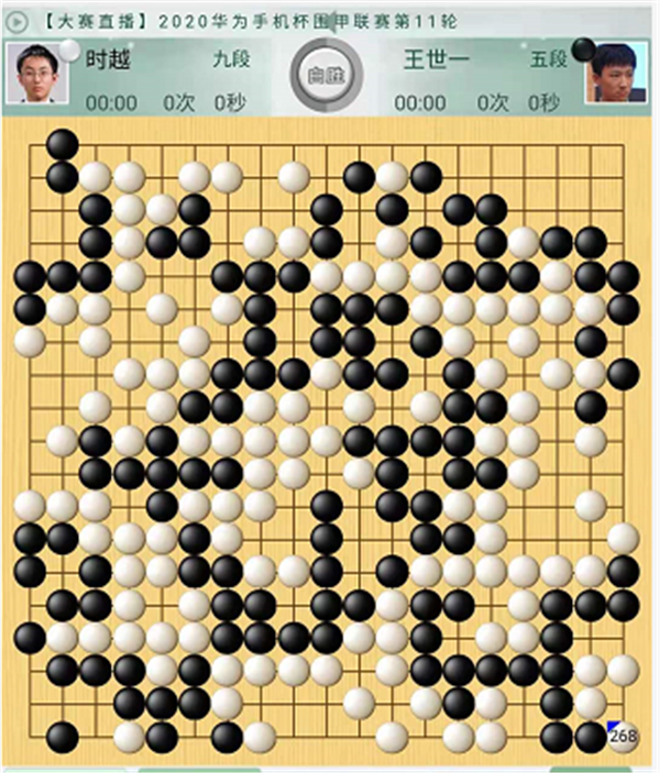 主將臺(tái)由深圳隊(duì)世界冠軍時(shí)越九段執(zhí)白對(duì)陣小將王世一五段。中盤戰(zhàn)斗中黑棋連續(xù)下出緩手,白棋取得領(lǐng)先。中央定型白棋又出現(xiàn)小失誤,局面接近。官子階段雙方錯(cuò)進(jìn)錯(cuò)出,局面一度來回波動(dòng)。最終還是白棋后半盤功力略勝一籌,獲得些許便宜后以明顯優(yōu)勢(shì)獲勝,時(shí)越執(zhí)白中盤勝王世一。