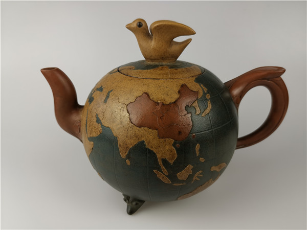 再說第二件,《世界和平壺》的回歸。2020年6月,唐朝霞老師的愛人韋強先生正在深圳商會開會。其間,一次會議結束后剛回到酒店時手機響起!一位美國的朋友電話給他告訴他一個天大的喜訊:在日本發(fā)現(xiàn)了唐朝霞爺爺唐鳳芝的傳奇作品“世界和平壺”。韋強介紹說,1943年,因為唐鳳芝是民國時的紫砂大師,民國政府委托唐鳳芝先生特制了“世界和平壺”,隨后,由宋美齡女士在赴美國演講時一起帶了過去,象征著世界和平之意!想不到時隔80年,竟然在日本出現(xiàn)了。韋強說,看到實物照片時,真的太激動了!此前,他們在家里只看到過爺爺設計的圖紙,從沒看到過實物,接到這意外訊息真的是驚喜萬分!真是難以入眠!通過一系列的協(xié)調,日本的藏家愿意轉讓,讓激動的心更加興奮了,立即訂了機票,著手辦理“回歸事宜”。當他終于在海關拿到了這件作品,包裝非常完好,便緊緊的抱在胸前:飄泊海外80年的“思念”終于落定了,爺爺唐鳳芝的“世界和平壺”終于回家了。韋強說:當時的心情無法用言語形容!只覺得天空格外清新、陽光格外燦爛!