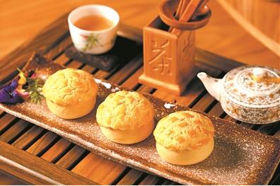 香港人嘗試在餐包上涂上一層由砂糖、雞蛋和牛油做的酥皮,高溫?zé)h后的酥皮開始爆裂,形成裂紋,看著像菠蘿的紋路,于是有了這個形象的名字“菠蘿包”。早期的菠蘿包是沒有菠蘿的,香港人喜歡將其攔腰切出一道口子,塞進(jìn)冰冷的黃油,這就是菠蘿油;現(xiàn)在,有的酒樓食肆為了滿足食客們,在菠蘿包里加入菠蘿內(nèi)餡,至此,菠蘿包終于成為名副其實(shí)的“菠蘿包”。某酒店的桃園館和某亭皆有供應(yīng)“真材實(shí)料”的菠蘿包,精選臺灣鳳梨味餡料,以面粉和酵母加入涼白開水后搓成面團(tuán)發(fā)酵后,再用雞蛋、牛油、白砂糖和入面粉搓成的面團(tuán)拍成一層皮蓋在面包表面,放入烤爐烤制15分鐘左右。