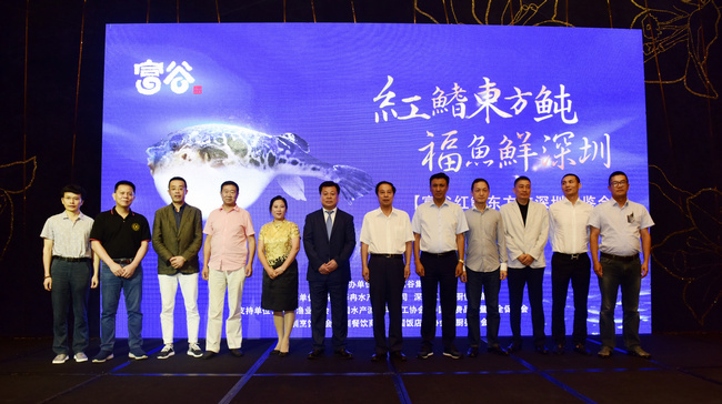 中國(guó)漁業(yè)協(xié)會(huì)趙興武會(huì)長(zhǎng)在致辭中盛贊富谷紅鰭東方鲀,發(fā)出從深圳起步“每人多吃一條 多吃一斤河豚魚”吃河豚魚支持河豚魚產(chǎn)業(yè)發(fā)展的倡議。