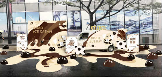 本次喜茶“波波冰淇淋巴士”全面升級,延續(xù)了時尚的波點元素,融入冰淇淋流質(zhì)爽滑的視覺形象,讓整個快閃店在炎熱的夏天也透著一絲絲涼意?,F(xiàn)場還增加了波波冰淇淋背景墻與地貼,烘托了夏天的歡樂氛圍,為消費者打造更有趣味性的互動環(huán)境。