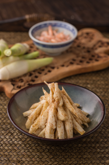 應季時令菜,茭白是江南三大名菜之一,有水中人參的美稱,營養(yǎng)豐富,味道樸實,調(diào)入用湖蝦蝦籽熬成的蝦醬冰鎮(zhèn),鮮香嫩爽。
