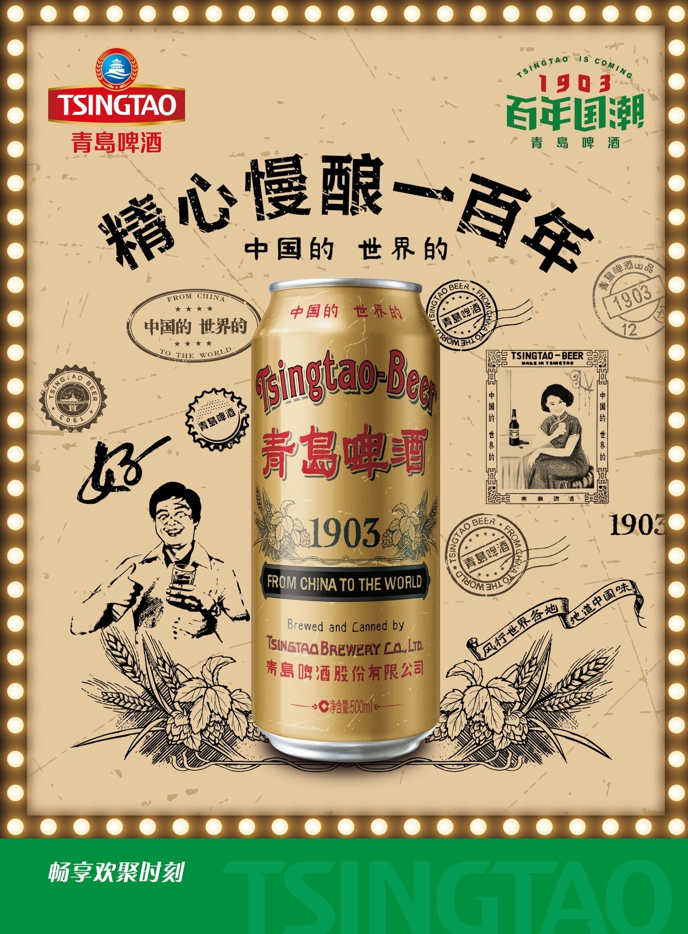 經(jīng)典1903國潮罐是青島啤酒“向經(jīng)典致敬,再造精釀傳奇”理念下推出致敬經(jīng)典的力作,采用青島啤酒1903年“兩段法低溫長時間慢熟”獨特且傳統(tǒng)的釀造工藝,始終堅持工匠精神,從原料篩選到工藝釀造的每一個環(huán)節(jié),都像雕琢藝術(shù)品一樣精致打磨,精心慢釀,造就了麥香濃郁醇香四溢的口感和體驗,其罐體復刻了百年前經(jīng)典瓶貼畫面的匠心細節(jié),復古元素與國際時尚潮流融于一體,是復古和時尚的典范。
