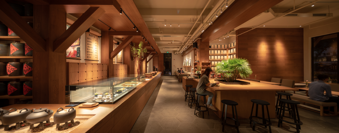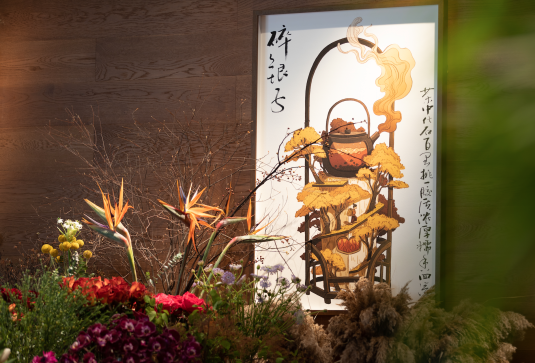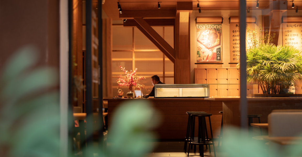 “一個(gè)溫暖的會(huì)客廳”是tea’stone對(duì)所構(gòu)建的茶空間的定義,也是他們對(duì)其所提倡的茶美學(xué)生活的表達(dá)之一。tea’stone團(tuán)隊(duì)有著深厚的空間美學(xué)造詣,在傳統(tǒng)的基礎(chǔ)上做減法,沉浸式的開放空間,選取東方美學(xué)的核心因素,以傳統(tǒng)梁柱,斗拱和椽檁,勾勒出當(dāng)代簡(jiǎn)約的茶空間,呈現(xiàn)出精制溫暖的格調(diào),家私、櫥窗、花藝凡見種種,皆散發(fā)著和諧雅致的美感。簡(jiǎn)潔,現(xiàn)代,精致,溫暖,再結(jié)合“一人一席”的飲茶方式,讓喝茶這件事完整靈動(dòng),并且稱得上具有美感的生活方式。難怪能看到越來(lái)越多的人們抱著筆記本坐在tea’stone里面獨(dú)處、辦公、會(huì)友?,F(xiàn)代中國(guó)人的“第三空間”從此又有了新的選擇。