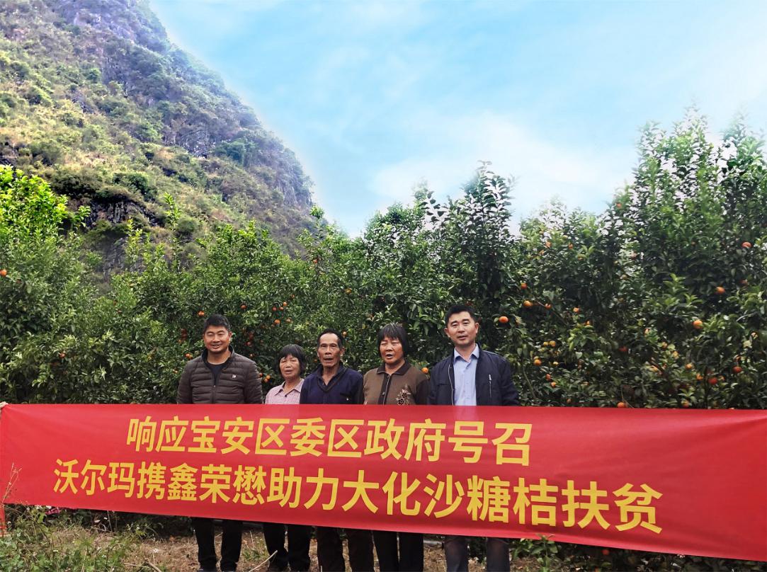 2019年,鑫榮懋進(jìn)一步深化對口幫扶工作,通過免費(fèi)授肥、請專家到果園授課,提升大化柑桔的產(chǎn)量和品質(zhì),帶動當(dāng)?shù)厮a(chǎn)業(yè)發(fā)展。為大化縣所有建檔立卡的水果種植貧困戶、及貧困戶參與經(jīng)營的果園免費(fèi)發(fā)放肥料逾12噸,受益種植面積近1300畝,同時優(yōu)先采購貧困戶管理經(jīng)營的果園。