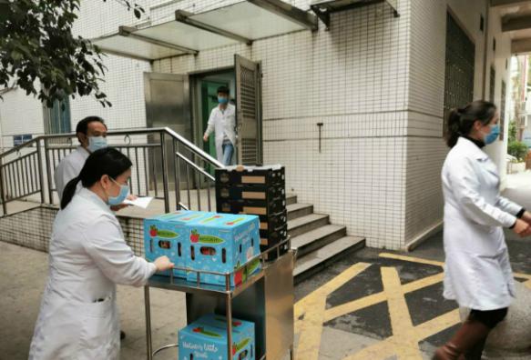深圳市第三人民醫(yī)院醫(yī)護(hù)人員接收水果禮盒。