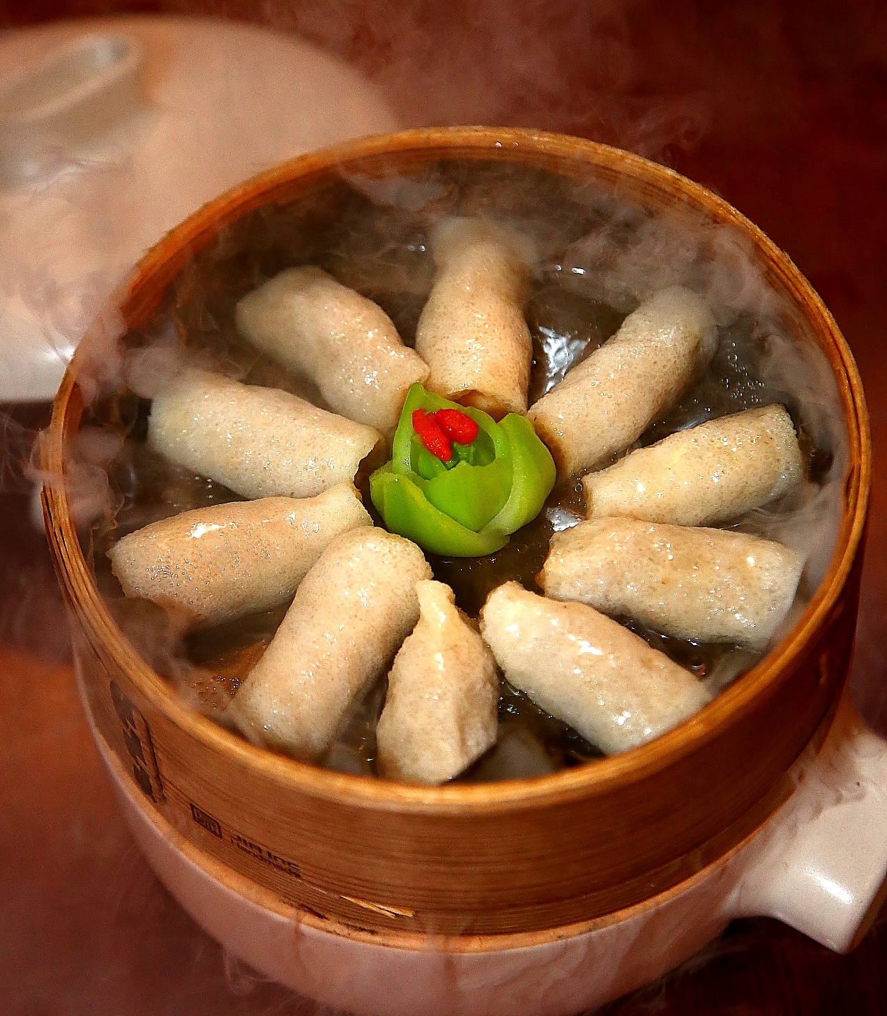 這款也是蒸雞,不過是將蒸雞起骨拆肉釀入竹笙中,比較復雜