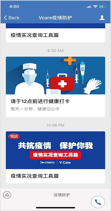 在疫情防控部分,維他奶準(zhǔn)備充足,全力保障每一位員工的健康和安全。首先,利用企業(yè)微信,維他奶建立每日健康監(jiān)控機制,持續(xù)追蹤全體員工健康狀況。其次,公司利用微信小視頻等媒體工具制作防控指引和要求,讓員工掌握防控知識和防控要求。除了必不可少的佩戴口罩、測量體溫、健康問詢登記和辦公場所和生產(chǎn)區(qū)域的消毒工作外,維他奶還建立全方位覆蓋的防控組織和應(yīng)急預(yù)案,設(shè)立疫情防控專員,鼓勵職能部門的員工使用在線會議等溝通工具以減少近距離接觸,實現(xiàn)工作會議和防疫安全的兩不誤。