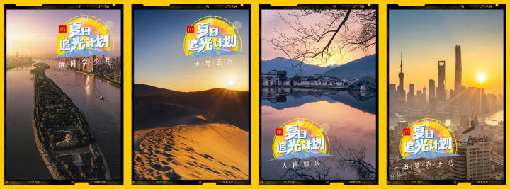 7月6日,麥當(dāng)勞“夏日追光計劃”從西安大雁塔出發(fā),來到長沙橘子洲頭,領(lǐng)略“恰同學(xué)少年”的意氣風(fēng)發(fā)。從敦煌、漠河,到青海湖和張掖,一起尋找“詩與遠(yuǎn)方”??缭角鄭u、杭州、福州、大連、蘇州和平遙,看遍“人間煙火”。在廣州小蠻腰和深圳東門,感受“追夢赤子心”。為期28天的追光之旅,暖心浪漫的麥當(dāng)勞為大家搜集不同城市的日出,并用四個主題串起28地。敬請關(guān)注麥當(dāng)勞嗶哩嗶哩(B站)帳號,鎖定連續(xù)28天的直播,也可以訪問麥當(dāng)勞官方網(wǎng)站觀看每天日出的精華視頻。