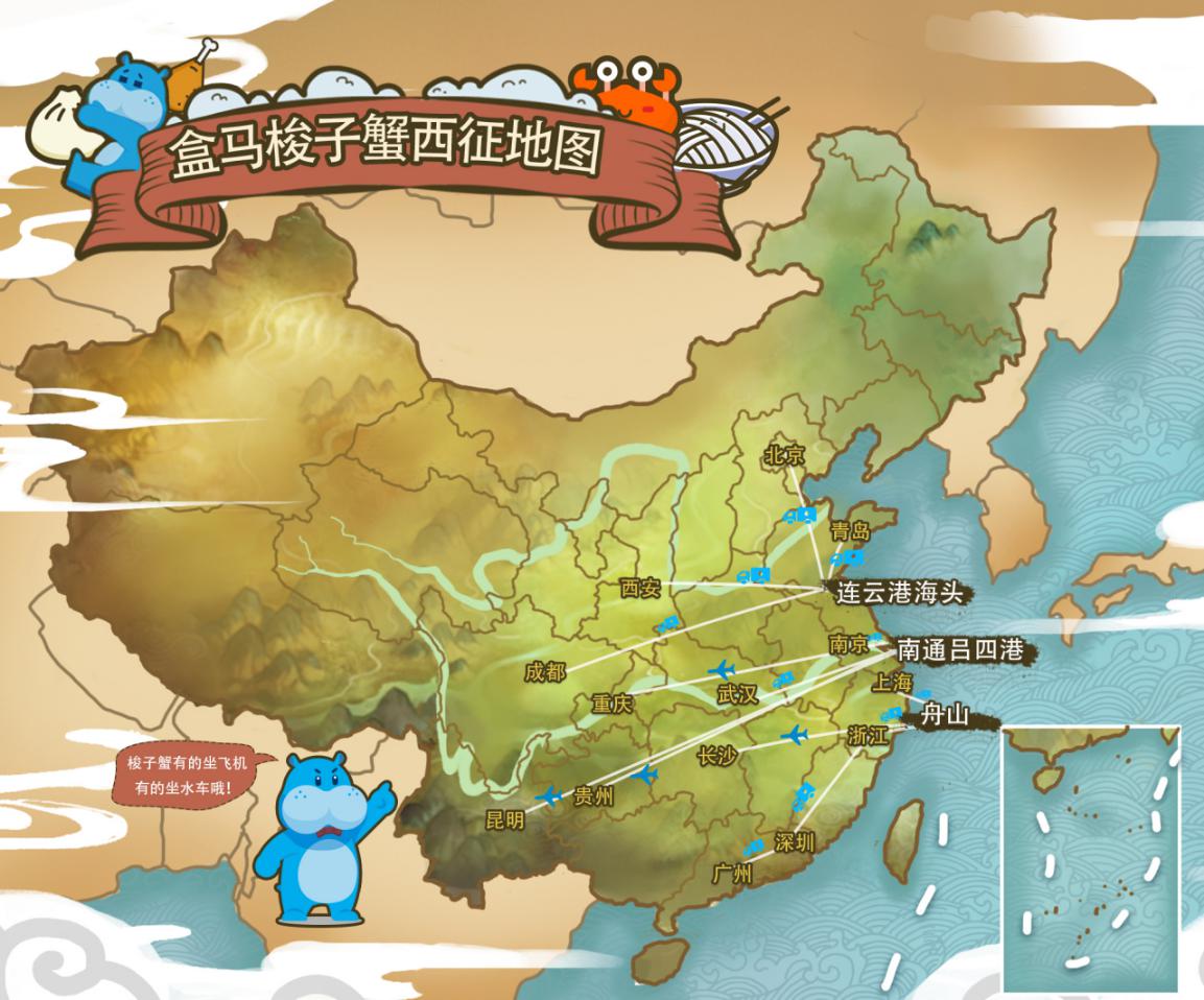 除了浙江舟山,盒馬還在在江蘇呂四、連云港分別設(shè)立了直采基地和純海水恒溫暫養(yǎng)倉,每個(gè)暫養(yǎng)倉可以容納5萬斤的梭子蟹和皮皮蝦,可以滿足2 -3天的海鮮供應(yīng)量,并根據(jù)空間距離、物流干線等因素,來調(diào)撥供應(yīng)近20個(gè)城市的門店,提升海鮮的鮮活度。