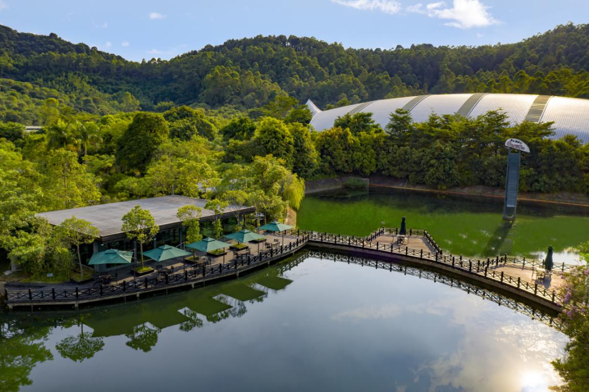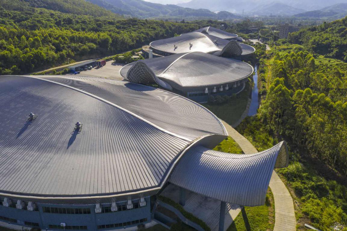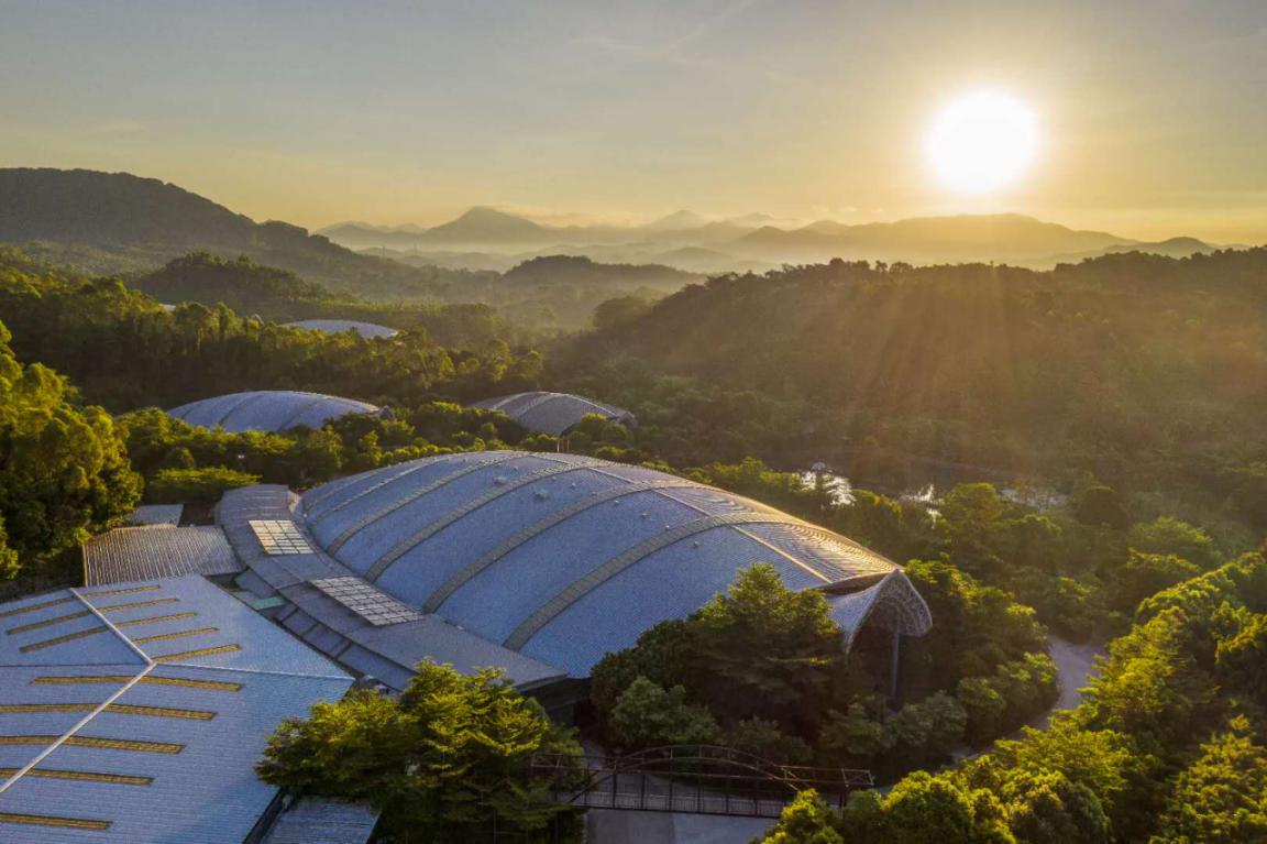 百歲山生產(chǎn)基地坐落在羅浮山脈腳下,整個工廠與周圍的自然生態(tài)融為一體。進入廠區(qū)后,整潔開闊的道路、郁郁蔥蔥的樹木、頗具藝術感的銀龜型廠房,都讓人不敢相信這里是一個工廠,簡直就是旅游景區(qū),也太美了吧!