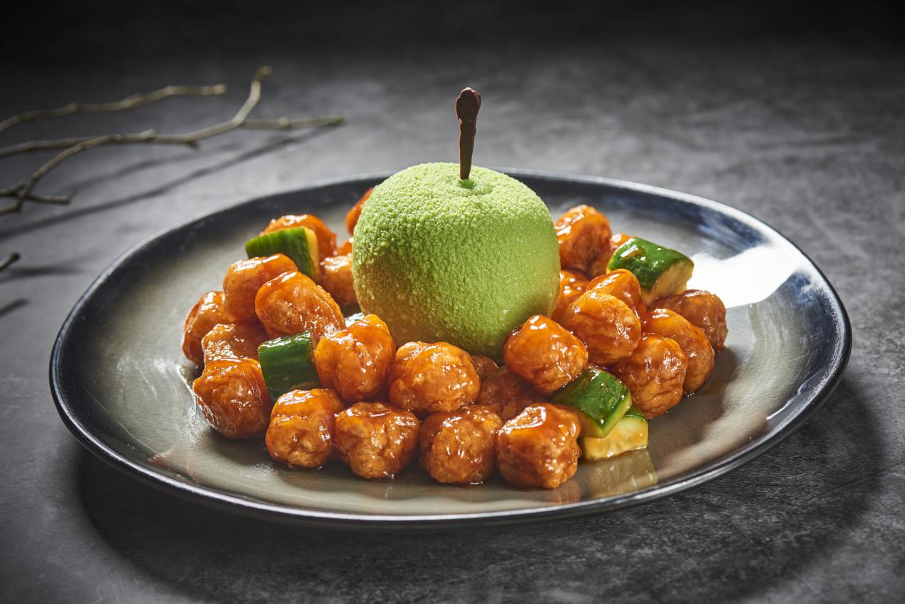 青蘋果造型的太空蛋,輕輕一敲,涌動(dòng)的慕斯傾瀉而出,咕嚕肉的酸甜與慕斯的奶甜,吃起來有滋有味,是恍如隔世的初戀味道,是記憶中那份美好的味道。