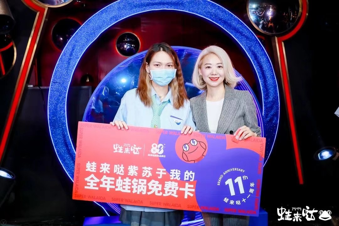 蛙來(lái)噠超級(jí)品牌日派對(duì)上,由蛙來(lái)噠董事長(zhǎng)羅清親自為“2021年度蛙粉”獲得者頒獎(jiǎng),同時(shí)抽取了“蛙來(lái)噠全年免排隊(duì)卡”以及“蛙來(lái)噠全年蛙鍋免費(fèi)卡”等蛙來(lái)噠品牌日專屬大獎(jiǎng),將品牌日的氛圍推向高潮。