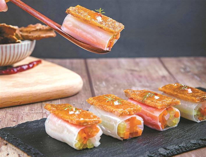 粵菜師傅巧妙設(shè)計(jì),將荔枝肉與蝦仁共燴——碧綠蝦仁炒荔枝肉。