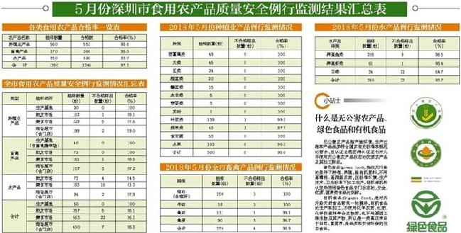 深圳市食品藥品監(jiān)督管理局5月份在全市范圍內(nèi)的69個(gè)食用農(nóng)產(chǎn)品生產(chǎn)、經(jīng)營(yíng)場(chǎng)所抽檢食用農(nóng)產(chǎn)品1280份,其中種植業(yè)產(chǎn)品560份,8份不合格;畜禽類產(chǎn)品370份,4份不合格;水產(chǎn)品350份,22份不合格。檢測(cè)不合格的產(chǎn)品均已實(shí)施了后續(xù)處理。