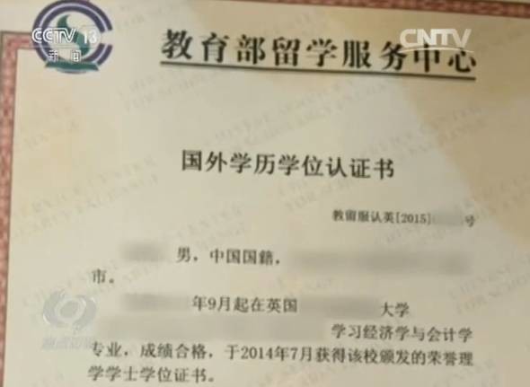 據(jù)央視報道,只要花10萬元錢,不用上學,北京中關(guān)村一家中介公司就能直接給辦理國外某所大學的畢業(yè)證,并順利通過教育部留學服務中心官方認證,學位真實有效。該公司負責人稱,他們公司這條線送進去的材料,會得到特殊的關(guān)照,平時需要多和認證中心的人打好關(guān)系,維持好彼此的“合作”。對此,留學服務中心認證處負責人表示,廉政風險任何一個單位都會有,從技術(shù)上可以堵得住,但是如果真是人員這方面出了問題,他們“確確實實沒有辦法”。
