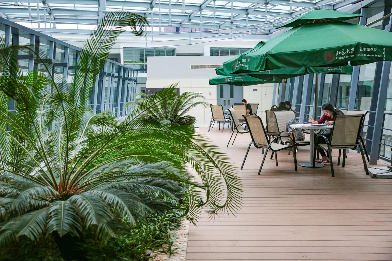 走進北大匯豐商學院教學樓,陽光透過頂部半透明的玻璃傾瀉而下,鋪滿整個中庭,明亮、溫暖、自然。每層樓向外突出的玻璃小屋,被稱為“思考盒”,充分體現(xiàn)了以人為本、簡潔實用、美觀大方的設計理念。這棟建筑被譽為“思想的空間”、“精神的空間”和“心靈的空間”,每個細節(jié)無一不彰顯著北大匯豐商學院“立足深圳、面向世界”的國際化辦學特點和建成“世界一流的商界軍?!钡霓k學目標。