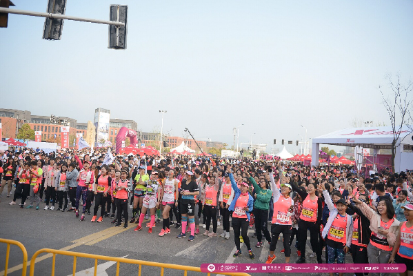 今年賽事現(xiàn)場最大的亮點在于,取消了開賽儀式,僅保留鳴槍一項流程。主會場起點區(qū)域沒有了大型噴繪的主席臺,取而代之的是小巧簡約的發(fā)令臺。上午7點,不間斷的熱身音樂響徹整個甜蜜小鎮(zhèn),運動員們在進入賽道集結(jié)后,配合著音樂,跟隨著健身教練的指引一起熱身。上午8點30分,鳴槍嘉賓們準(zhǔn)時登臺鳴槍,全體3000多名跑者一起沖出起點門,化作一片粉紅色的海洋,向著終點奔去?!叭∠_賽儀式對跑者來說是非常貼心的一項舉措,讓我們在進入賽道之后依然能夠繼續(xù)熱身,時間一到準(zhǔn)時開跑,整個參賽流程也更加流暢了。”參賽選手在賽事現(xiàn)場直言道,簡化起跑前的儀式流程,對于跑者來說是一種更好的參賽體驗。