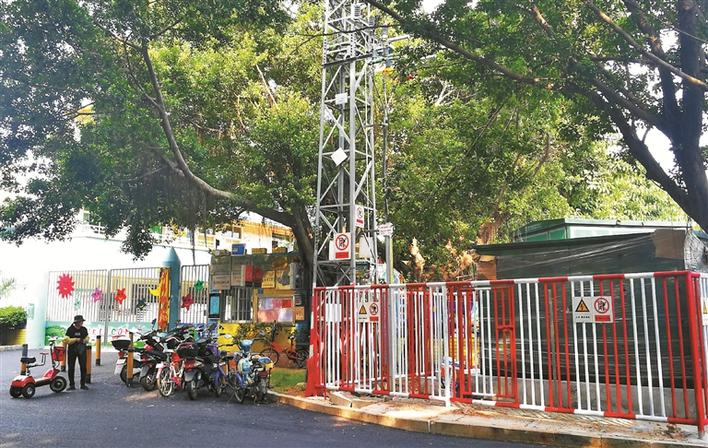 ▲讓家長(zhǎng)擔(dān)憂的高壓電柜距離幼兒園門(mén)口不到5米。深圳晚報(bào)見(jiàn)習(xí)記者 高靈靈 攝