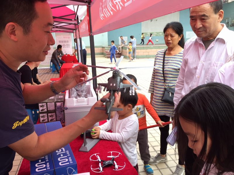 “哇,看它飛起來(lái)了”廣場(chǎng)另一邊,總簇?fù)碇蝗喝汉教炜萍济?,在現(xiàn)場(chǎng)操控員的引導(dǎo)下,不少小朋友躍躍欲試,伴隨著啟動(dòng)到起飛,方向控制,無(wú)人機(jī)一次次在歡呼雀躍聲中騰空飛躍......騰宇達(dá)航空航天科技產(chǎn)業(yè)有限公司的無(wú)人機(jī)項(xiàng)目點(diǎn)燃了青少年的航天夢(mèng),通過(guò)現(xiàn)場(chǎng)引導(dǎo)與試飛,給航天迷打造樂(lè)園同時(shí),也傳播了無(wú)人機(jī)飛行相關(guān)科普知識(shí),對(duì)激發(fā)青少年航天興趣具有重要作用。