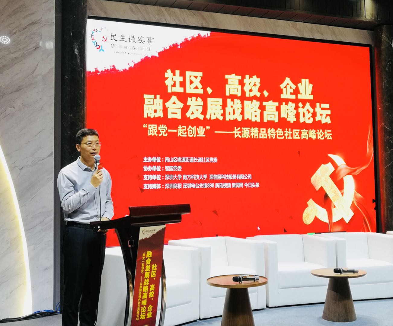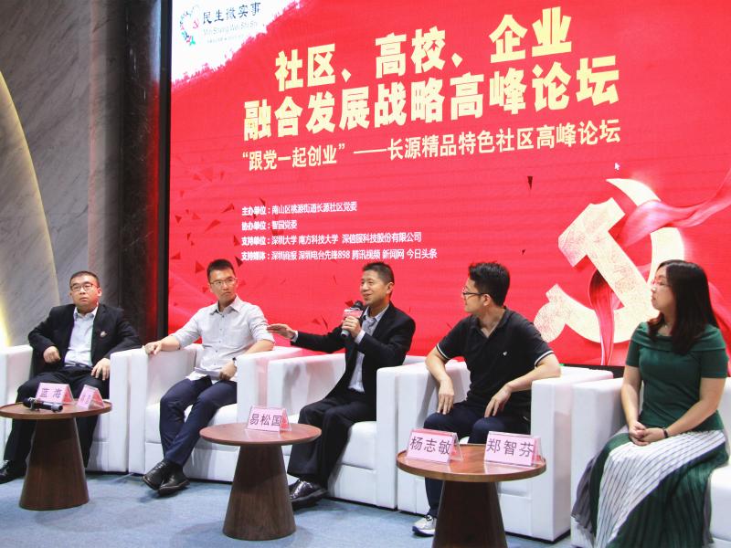 桃源街道黨工委書記黃健表示,本次論壇是智園黨群服務中心正式開放以來的第一場大型活動,桃源街道黨工委將努力把這里打造成為“一中心兩平臺”,即社區(qū)、校區(qū)、園區(qū)“三區(qū)融合”展示中心,北部片區(qū)園區(qū)黨群服務平臺,資源共建、共享、共治的對接平臺,把智園和長源片區(qū)打造成為“三區(qū)融合”的典范。嘉賓易松國作為主講嘉賓,進行了《共建、共治、共享視角下的社區(qū)融合》主題演講。隨后嘉賓們圍繞黨建統(tǒng)領的社區(qū)融合建設中,企業(yè)、高校、社區(qū)如何發(fā)揮各自優(yōu)勢,提供資源與平臺,打造長源精品特色社區(qū)各抒己見。嘉賓林彥結(jié)合本公司的孵化發(fā)展歷程暢談智園的發(fā)展,他表示目前公司已經(jīng)與全國多家高校建立了合作關系,共同推動創(chuàng)新技術的產(chǎn)業(yè)化。嘉賓藍海指出:南方科技大學的迅速崛起,從科研成果產(chǎn)業(yè)化、人才輸送等方面為長源社區(qū)的發(fā)展提供了廣闊的空間。