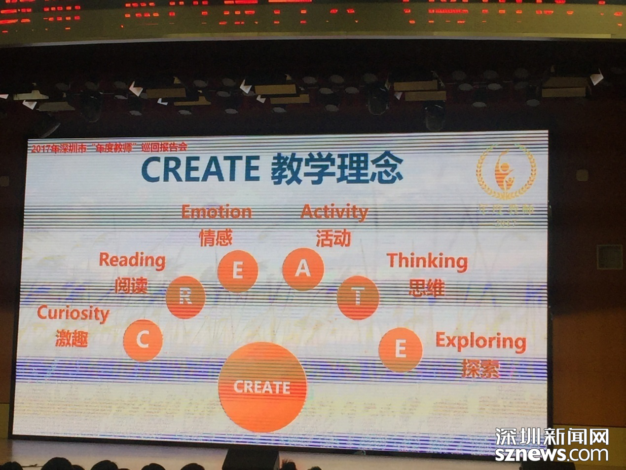 我有幸聽了一場深圳市年度教師的巡回演講,其中一個老師講到自己的幸福成長過程時,展示了自己獨有的特色教學(xué)理念——CREATE教學(xué)理念,如圖,她的所有課堂充現(xiàn)了激趣、閱讀、情感、活動、思維和探索等六大環(huán)節(jié),彰顯特色,成就精英,當(dāng)你達到如此境界時,幸福感和成就感就會水到渠成,雖然不求人人成精英,但愿人人有特色。