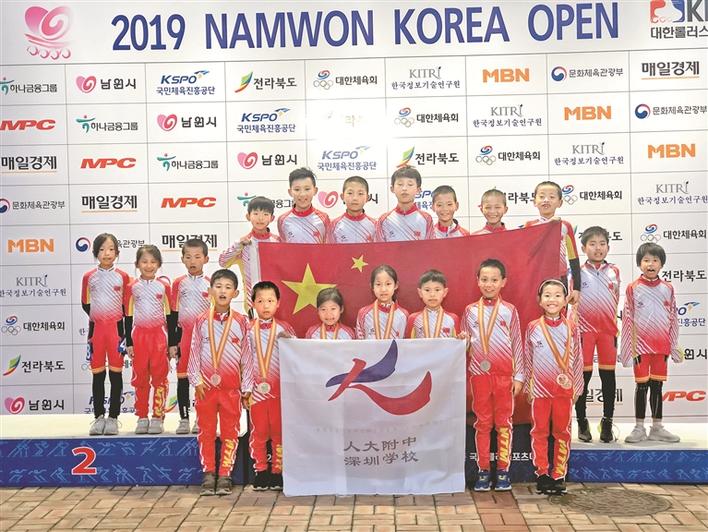 晶報(bào)05月16日訊 近日,韓國(guó)南原國(guó)際輪滑公開賽順利舉行,吸引了來自全球16個(gè)國(guó)家和地區(qū)的1000多名優(yōu)秀運(yùn)動(dòng)員參賽。晶報(bào)記者從人大附中深圳學(xué)校獲悉,該校小學(xué)輪滑隊(duì)的11名選手首次代表中國(guó)MX青少年隊(duì)參加了本次國(guó)際輪滑公開賽的小學(xué)(1&2年級(jí))的項(xiàng)目比賽,經(jīng)過激烈角逐,喜獲2金4銀13銅。值得一提的是,這是剛成立一年的人大附中深圳學(xué)校輪滑隊(duì)隊(duì)員們?cè)趪?guó)際舞臺(tái)上的首次亮相。學(xué)校以愛與尊重為核心理念,注重學(xué)生的全面發(fā)展,并注重突出發(fā)展學(xué)生特長(zhǎng),充分挖掘?qū)W生潛力,開設(shè)了豐富多元的課程,其中,開設(shè)了輪滑課等必修課,以及舞蹈、國(guó)際象棋等特色課程。