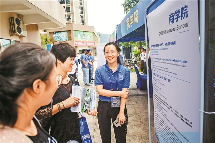 為了使廣大學(xué)生、家長(zhǎng)和更好地了解深圳技術(shù)大學(xué)的招生辦學(xué)特色,由深技大各學(xué)院、部門的師生志愿者組成的招生咨詢隊(duì)伍在高溫下以燦爛的笑容、體貼的服務(wù)為考生及家長(zhǎng)現(xiàn)場(chǎng)答疑解惑,在咨詢隊(duì)伍中,不乏院長(zhǎng)和外籍教授的身影。