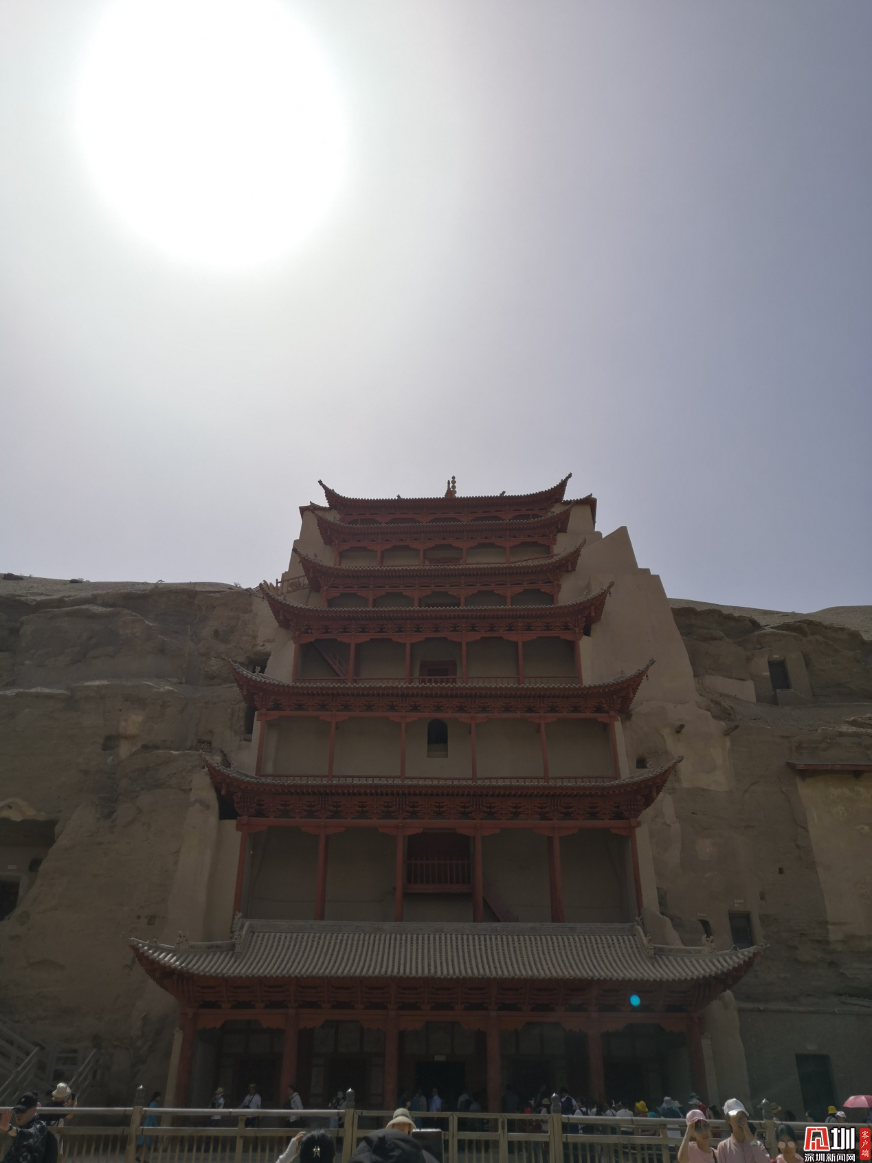 莫高窟是敦煌的代表,是駝鈴悠揚(yáng)的漫長(zhǎng)絲路的縮影。我不知道該怎樣去寫神秘的莫高窟。我不想繪聲繪色地描寫幽暗清冷的洞窟里,沒有講解員的手電筒根本看不清的雕塑。他們的神情舉止,他們的衣著色彩,無論是在藝術(shù)還是宗教與歷史上都是耐人尋味的,從非專業(yè)的角度解讀是不負(fù)責(zé)任的。所以以下是部分回憶講解員的介紹,部分出自自己對(duì)莫高窟的了解。