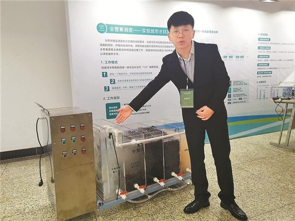 安徽建筑大學(xué)今年是首次參賽,大三本科生仇善博帶隊的參賽作品為“基于納米改性蜂巢石的分散式污水一體化處理裝置”。