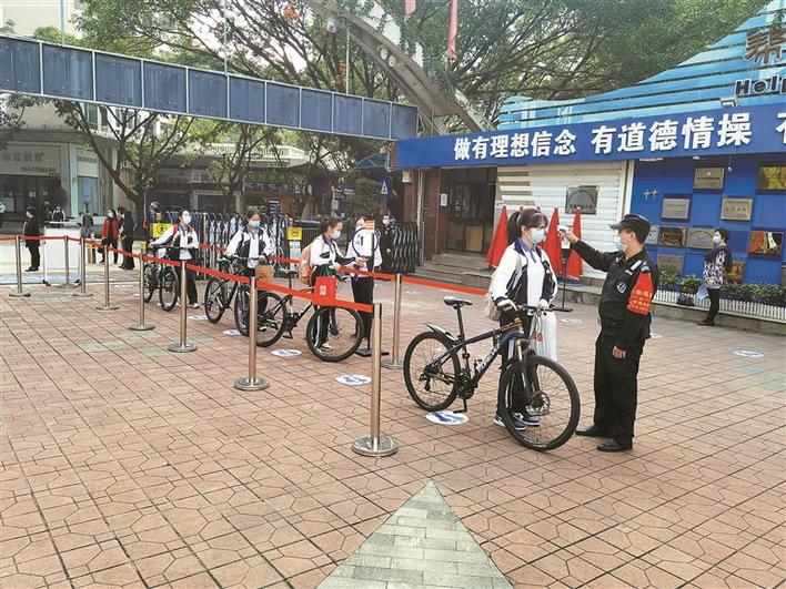 龍城初級中學(xué)學(xué)生騎自行車返校進(jìn)校門走專門的通道。晶報記者陳利城/攝