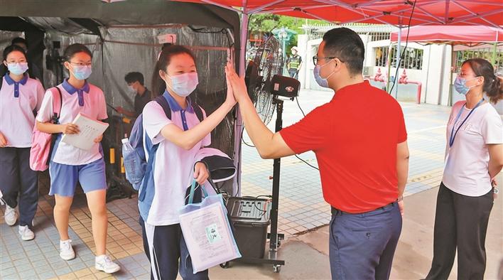 見圳客戶端·深圳新聞網2020年7月21日訊 昨日,深圳市2020年中考順利開考。全市8萬多名考生分赴10個考區(qū)、151個考點參加考試,各項考務工作有條不紊。記者在深圳市招考辦獲悉,中考首日,各考點在嚴格組織好考務工作的同時,為考生提供多種貼心服務,獲考生、家長贊譽。
