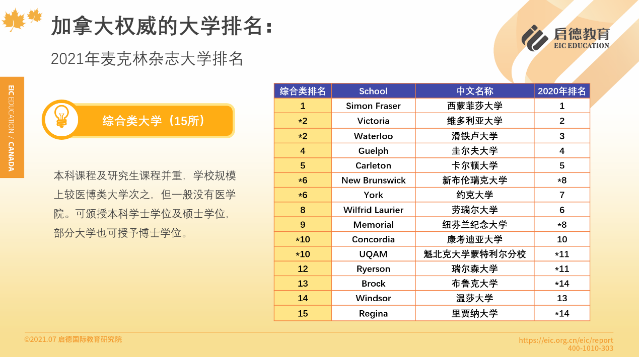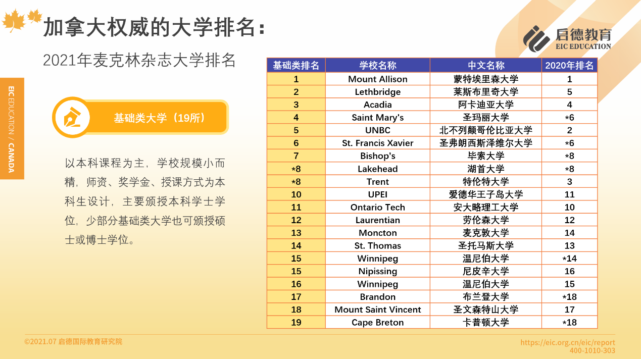 加拿大高校以公立為主,各具特色與優(yōu)勢,教育質(zhì)量在官方評(píng)價(jià)體系中并沒有顯著區(qū)別,因此,啟德教育建議,在選擇院校時(shí),除了參考麥克林雜志排名,還應(yīng)該通過院校官網(wǎng)或者留學(xué)顧問,更全面地了解加拿大高校的實(shí)力。麥克林排名根據(jù)加拿大大學(xué)的類型,分為醫(yī)博類、綜合類、基礎(chǔ)類三個(gè)排名,值得一提的是,連續(xù)21年位于基礎(chǔ)類大學(xué)排名榜首的蒙特艾莉森大學(xué),是加拿大本科畢業(yè)生中獲得羅德獎(jiǎng)學(xué)金人數(shù)最多的學(xué)校,羅德獎(jiǎng)學(xué)金又被稱為“全球本科生諾貝爾獎(jiǎng)”。此外,基礎(chǔ)類排名第19的卡普頓大學(xué),在最近一期的Analytics Insight雜志中,與美國麻省理工學(xué)院、英國華威大學(xué)等一同入選了2021年10家最著名的分析和數(shù)據(jù)科學(xué)機(jī)構(gòu)。