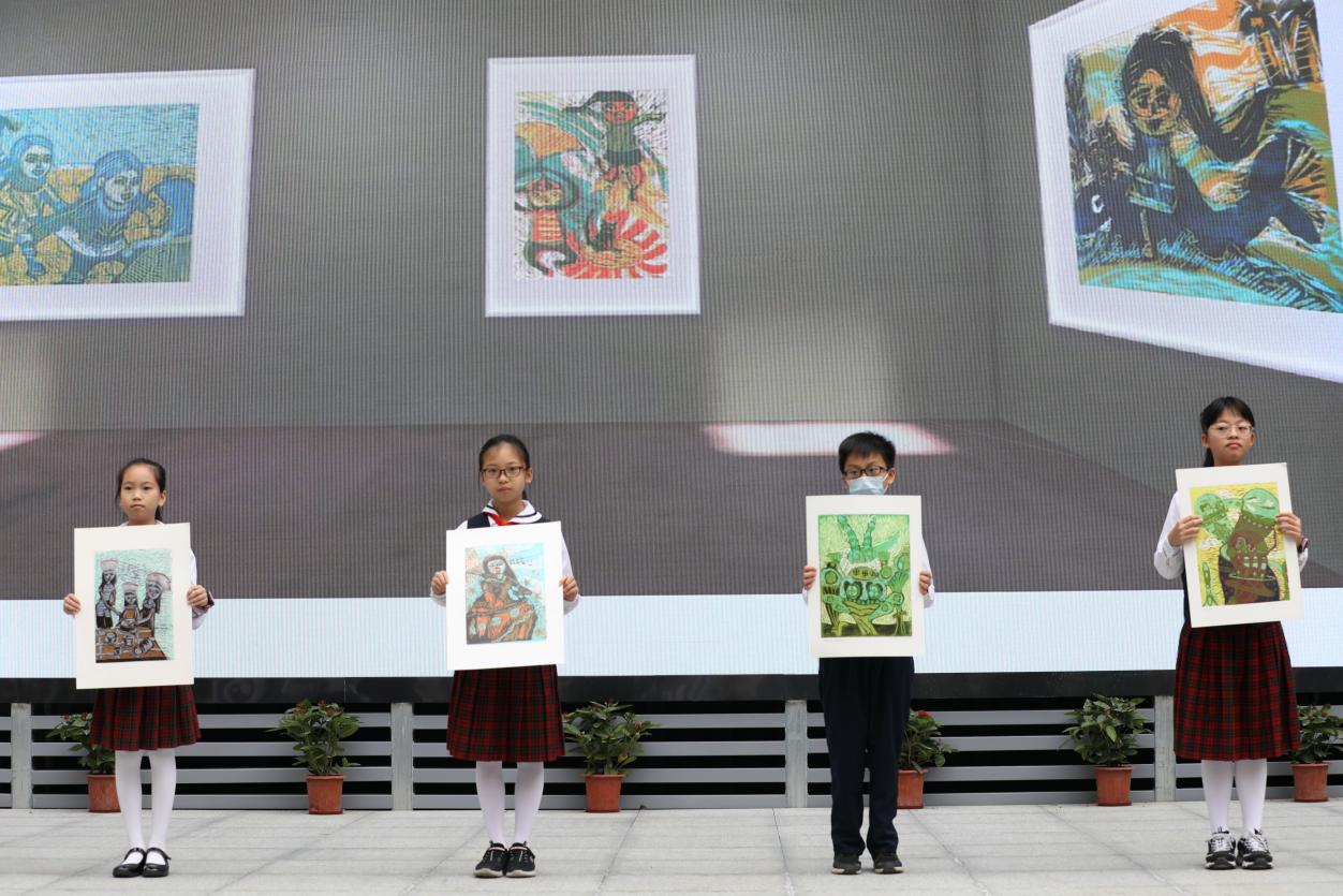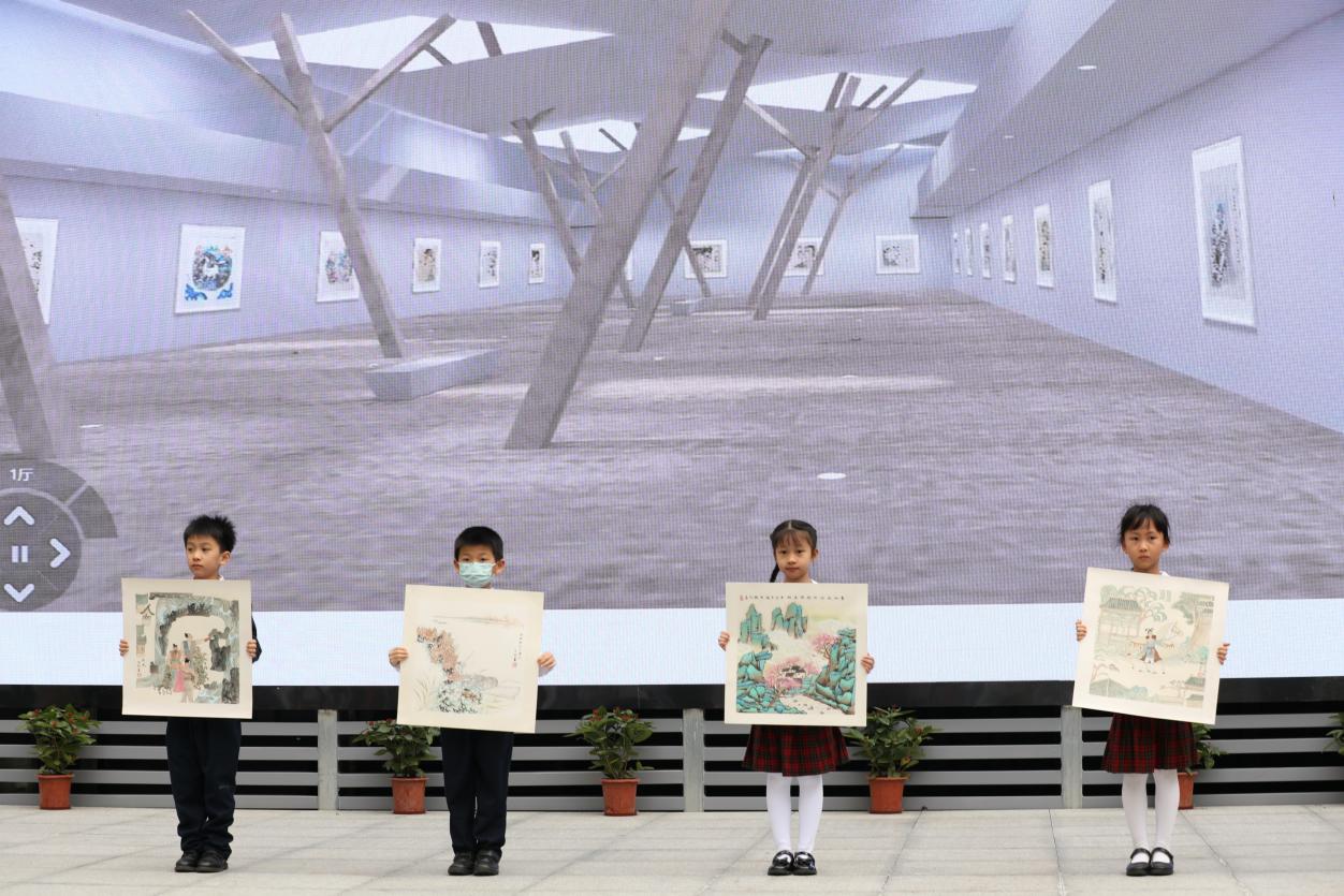 與開館和展覽同時(shí)推出的,還有“榕”美術(shù)館的云展館。云展館以新媒體形式,擴(kuò)大了展覽范圍,使得學(xué)校的美術(shù)美育成果得以向外部展示。推出之際,學(xué)校舉行了云展館的剪彩儀式。解署昱校長致辭并宣布開館,福田區(qū)教科院藝術(shù)辦林影萍主任、解署昱校長、劉權(quán)祥副校長、姚紅霞副校長為云美術(shù)館剪彩,并向全校學(xué)生贈(zèng)送了云展館資料。