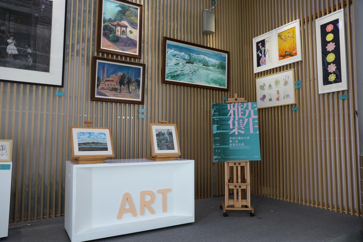 展覽作品來自學(xué)校的各學(xué)科教師,他們用自己的作品,展現(xiàn)出所耕耘的教育園地,以及“本領(lǐng)過硬,銳意創(chuàng)新”的專業(yè)技能和素養(yǎng)。展覽好似一次“百花齊放”,在碰撞與交流創(chuàng)造了審美的可能性;又勝似“百鳥朝鳳”,緊扣教學(xué)美育的主題,充分體現(xiàn)學(xué)?!跋蛳略蛏仙L”的“榕樹課程精神”。