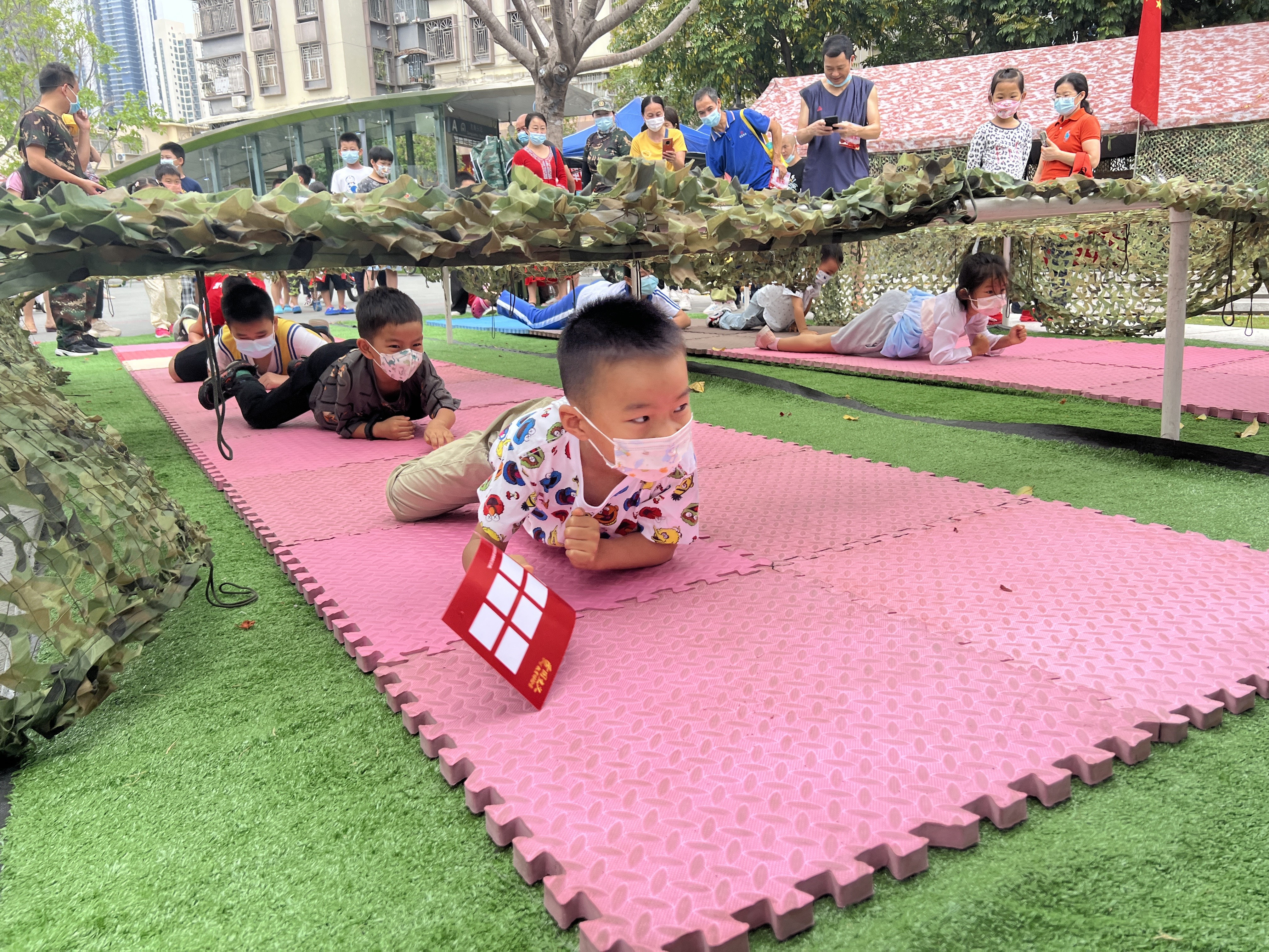 本次活動以體驗營的方式開展,吸引了200多名轄區(qū)居民、青少年兒童踴躍參加,引起熱烈反響?;顒庸苍O四個體驗營:挖掘歷史體驗營、導彈知識科普體驗營、穿越空襲隧道體驗營、穿越火線體驗營,現(xiàn)場的居民、青少年兒童對每個體驗營充滿了好奇與興趣,紛紛走進各個體驗營了解我國軍事歷史、導彈的發(fā)展歷程、體驗迫擊炮發(fā)射、穿越空襲隧道,甚至大展身手,在此起彼伏的加油吶喊聲中,以迅雷不及掩耳之勢穿越火線,現(xiàn)場氛圍熱烈。