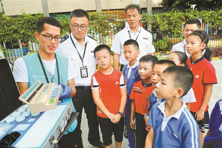 在寶安區(qū)濱海小學(xué),該校三年級(jí)6個(gè)班約300名學(xué)生齊聚這里,參加了一場(chǎng)別開(kāi)生面的校園食品安全游園會(huì)活動(dòng)。