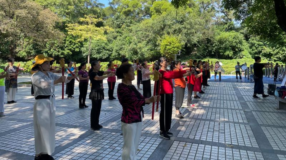 這一兩個月來,每天早上,有一群精氣神十足的阿姨們,手持一種舞蹈道具,在南頭古城臨中山公園的地方,非常有意思地跳著一種舞蹈,成為了南頭古城的一道風景。
