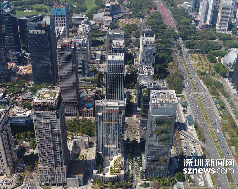 2018年3月,深圳新聞網(wǎng)無(wú)人機(jī)航拍已經(jīng)建成的深圳中心區(qū)“13姐妹”樓群