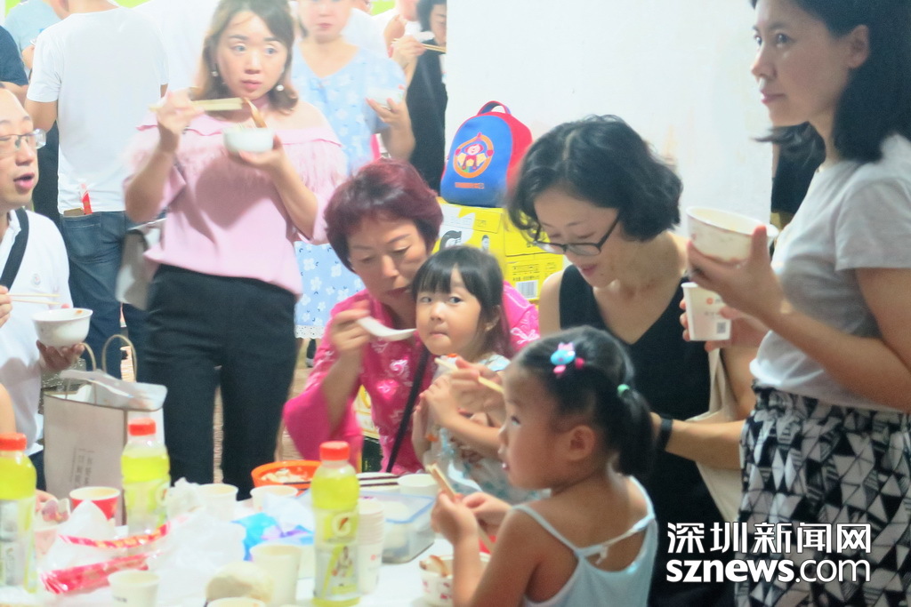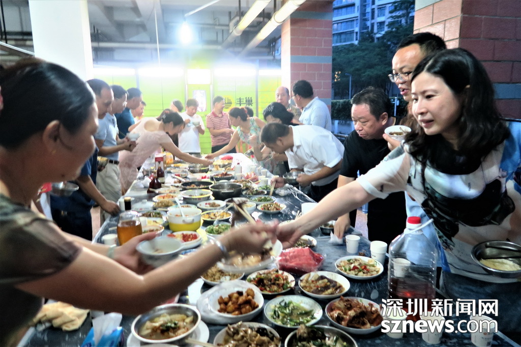 深圳新聞網(wǎng)訊 (記者 劉婷 林毓瑾 通訊員 張晉)住在鋼筋水泥森林,一墻之隔不往來,擦肩而過不搭話,這或許是城市鄰里關(guān)系的“痛點”,但深圳水木華庭的業(yè)主在8月11日舉辦了別開生面的“百家宴”,卻吃出濃濃的鄰里情,小編隔著屏幕都聞到了“愛的味道”…… 為慶祝水木華庭新一屆業(yè)委會的誕生,水木華庭業(yè)主微信群的群主楊莉建議11日在4棟B單元架空層,開個“百家宴”。這個主意一出來,水木華庭的業(yè)主們紛紛響應(yīng),業(yè)委會成員和業(yè)主大會籌備組成員也都紛紛表示:屆時將爭取貢獻一兩個拿手好菜! 于是乎,業(yè)主們分頭行動,籌備工作有條不紊地進行。8月11日晚,水木華庭入伙15年來的首次“百家宴”如期舉行。