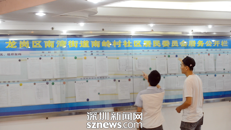 如今南嶺村社區(qū)居委會的公開欄