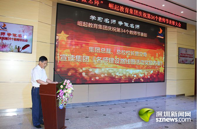 深圳新聞網(wǎng)訊 (記者 曹園芳)2018年9月10日,崛起教育集團(tuán)在崛起實(shí)驗(yàn)中學(xué)舉行慶祝第34個(gè)教師節(jié)暨表彰大會(huì)。崛起教育集團(tuán)董事局主席林良浩、集團(tuán)旗下各學(xué)校領(lǐng)導(dǎo)、優(yōu)秀教師代表、教職工代表,以及深圳市寶安區(qū)教育局副局長(zhǎng)、寶安區(qū)教育科學(xué)研究院院長(zhǎng)、寶安區(qū)教育局民辦教育管理科科長(zhǎng)、寶安區(qū)民辦教育協(xié)會(huì)秘書(shū)長(zhǎng)、寶安區(qū)教育局第一學(xué)區(qū)教育辦主任、寶安區(qū)教育局第三學(xué)區(qū)教育辦主任等來(lái)自社會(huì)各屆的領(lǐng)導(dǎo)、嘉賓出席了大會(huì)。