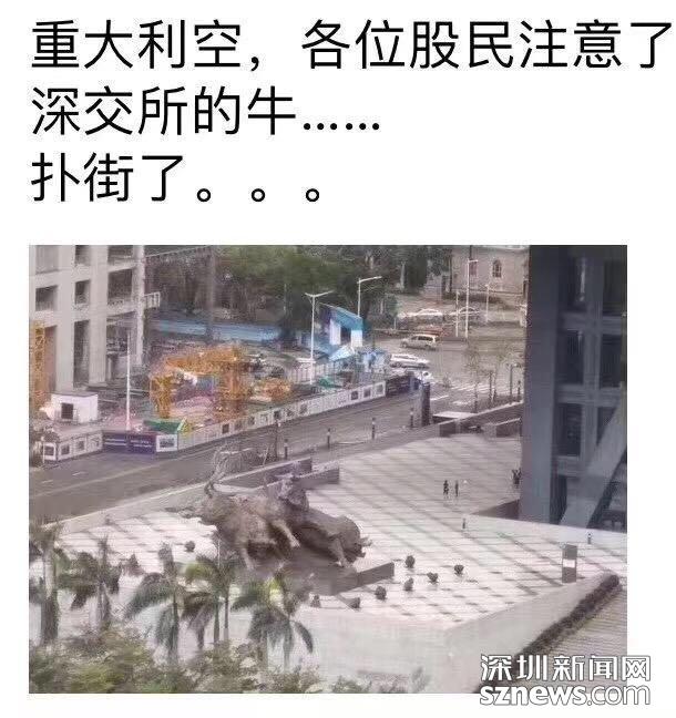 圖為網(wǎng)上流傳的深交所牛倒了的圖文