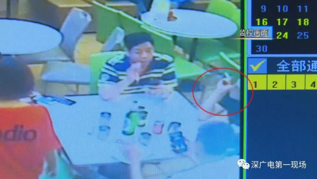 從監(jiān)控視頻可以看到,一名身穿黑色短袖的男子,自從進(jìn)入這家新皇馬茶餐廳后,就開(kāi)始一邊跟身邊的朋友聊天,一邊抽煙。