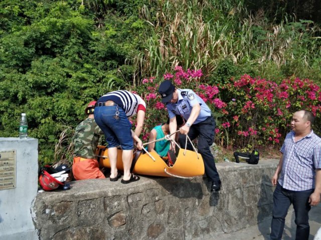 到現(xiàn)場后,民警了解發(fā)現(xiàn)該男子在爬山的過程中不小心踩到苔蘚摔倒受傷,當場倒地不起,無法動彈。情況緊急,四周山路陡峭,120急救人員短時間內(nèi)難以到達進行救治。這時,葉孟庭等民警當機立斷,將同行救援隊員分成兩組,用擔架將傷者一步步接力抬下山。此處位于亂石山澗中,隊員只能齊心協(xié)力抬著擔架一點一點小心挪移,坡陡石滑,空氣悶濕,加之荊棘擋道,隊員們汗如雨下,整整花了2個多小時才將擔架安全抬到盤山公路懸崖邊,隊員們個個衣衫濕透,手腳上的擦劃痕跡清晰可見。